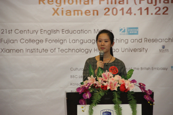 参加比赛的选手是从我省各所院校中脱颖而出的18名优秀学子。比赛分为定题演讲、即兴演讲、回答问题三个环节,选手们围绕演讲题目,以优美的语言、深刻的思想、丰富的知识和优异的台风诠释了英语演讲艺术的魅力,充分展示了福建省大学生英语应用的最高水平。各书院学院师生和全校英语爱好者观看了全程赛事。