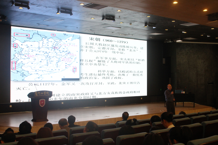 王教授从宋词谈到瓷器,从书院谈到科技,从绘画谈到南戏,引经据典,侃侃而谈,两个半小时的讲座很快就进入了提问环节。老师们的提问再次受到了王教授的肯定,他指出,从这些提问能看出,我校教师在从人文的角度来思考专业问题,这充分说明我校教师具有很高的专业素养和良好的人文素养。蔡校长的提问更是代表了现场大多数师生的疑问:我们应该如何看待岳飞这样的民族英雄?王教授旁征博引地向师生们阐述了他对这一问题的理解,博得了大家的好评。(宣传处讯文/刘娟、肖诗予 图/电视台)