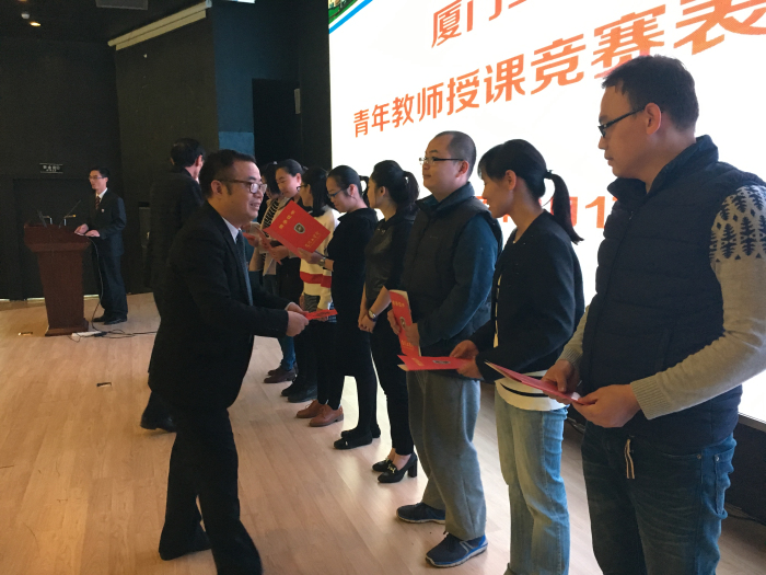 教务处处长马建华宣读了我校青年教师授课竞赛的表彰文件,并对获奖教师表示祝贺。副校长陈少牧、冯良贵为获奖教师颁发了荣誉证书。