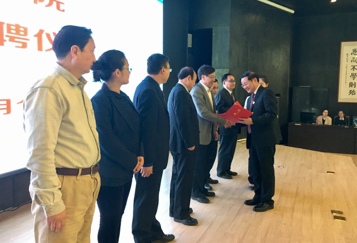 副校长田晓皋宣读了我校新教师的聘任文件,对受聘的八位高级职称教师的情况进行了简要介绍。校长蔡远利为新受聘教师颁发了聘书。