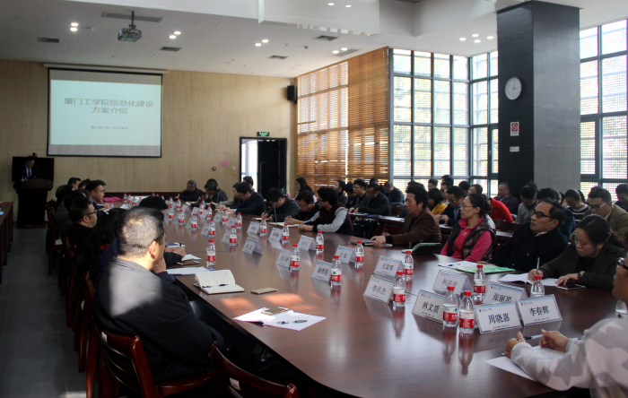 黄凯经理对厦门工学院信息化建设方案作了介绍,与会人员围绕信息化基础保障、数据共享、平台统一、网络与信息安全、新媒体利用等方面进行了讨论交流,结合各自工作领域提出了一些宝贵的意见和建议。
