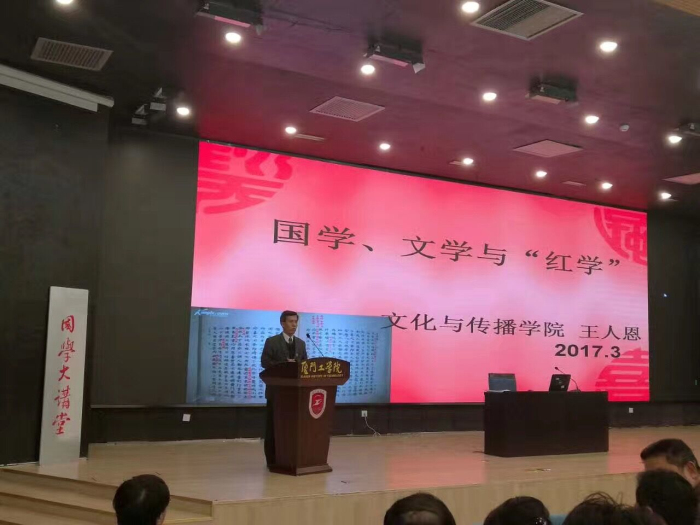 在报告中,王人恩教授首先从道德文章俱佳的王国维、钱锺书、胡适、鲁迅等十位国学大师谈起,就我国国学研究与发展现状作了归纳梳理。他说,从我国文学发展史、“红学”发展史的角度来看,很多国学大师,如王国维、钱锺书、蔡元培、胡适、鲁迅、陈寅恪等人本身就是红学家,他们对于“红学”的研究都是建立在对国学深刻理解与扎实研究之上的。在对王国维、钱锺书、蔡元培、胡适等六位重要的红学家的研究成果进行讲解的过程中,王人恩特别强调了胡适作为“新红学”创始人的重要地位。