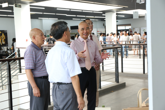 该毕业展,学校领导高度重视。5月19日上午,董事长李德文、副校长陈少牧、文化与传播学院院长苏涵、副院长曹鸣喜、机械与材料学院院长刘志强出席开幕式,并对学生的作品给予高度评价。