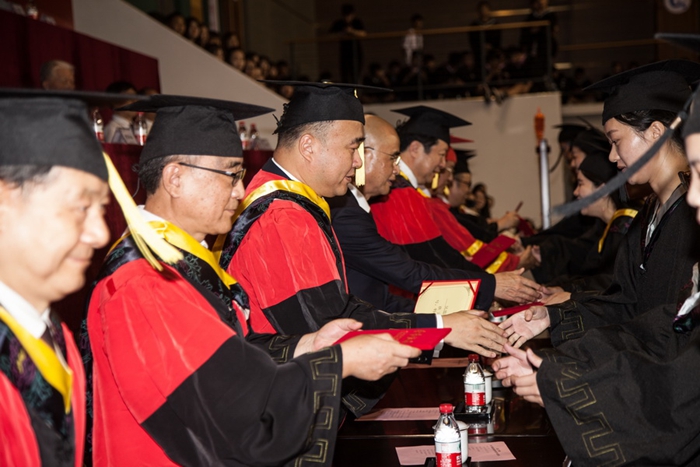 随后,主席台就座的领导、嘉宾为毕业生代表颁发了毕业、学位证书。