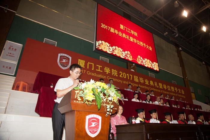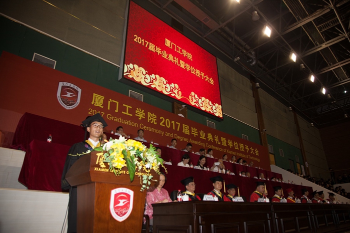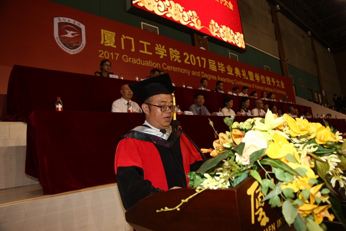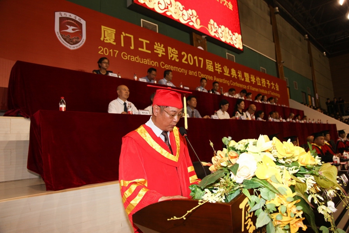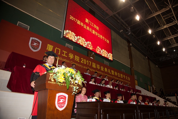 厦门工学院2017届2331名学子顺利毕业,中国工程院院士、厦门工学院科学与技术研究院首席科学家蒋庄德教授、厦门工学院董事长李德文先生、厦门工学院校长蔡远利教授、厦门工学院执行董事、副校长李雄虎先生、厦门工学院副校长陈少牧教授、厦门工学院副校长田晓皋教授、厦门工学院副校长冯良贵教授以及各院(系)、部门、直属单位负责人、资深教授、金帝集团高管、2017届全体毕业生共同见证了学子们梦想成真的庄重时刻。