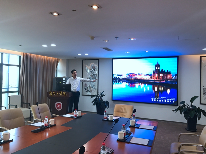 李斌先生则详细介绍了卡迪夫城大在国际化方面的所做的努力及截止目前为止的成果,同时也说明了未来一年内的规划及部署。此外也对两校将来的合作方向、项目布局和近阶段发展目标做了展望,更是提出了将厦门工学院纳入了卡迪夫城大发展宏图的重要支点。