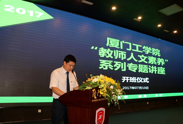 7月10日上午,厦门工学院2017年“暑期教师人文素养”系列专题讲座在我校图书馆报告厅拉开序幕。田晓皋副校长出席并致辞,开班仪式由人力资源处处长黄国良主持,全校教职工参加。