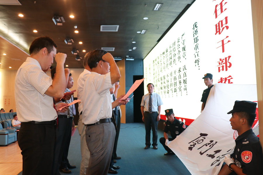 新任职干部面对厦门工学院校旗进行了宣誓。