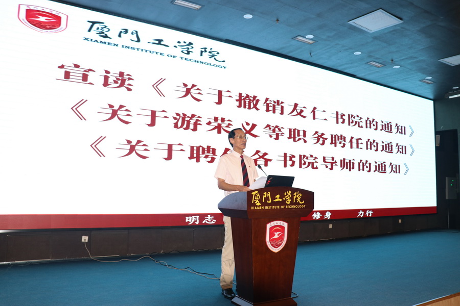 陈少牧副校长宣读了《关于撤销友仁书院的通知》《关于游荣义等职务聘任的通知》及《关于聘任各书院导师的通知》,并介绍了五大书院院长的个人简历。