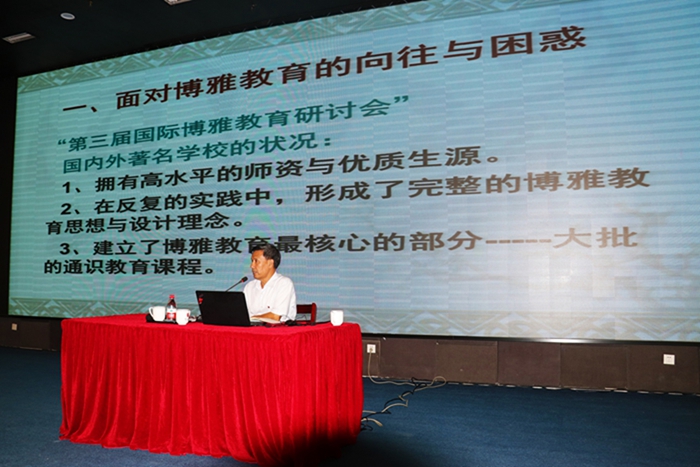 苏副校长从面对博雅教育的向往与困惑说起,阐述了博雅教育课程教学目的,并指出了现实教育存在的最大偏差,即:一、以就业可能为导向的办学观念的流行,低层次职业教育的普遍化存在;二、学生不读书现象的大面积存在;三、学生心理问题、心理危机频发。