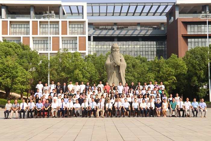 按照学校传统,受董事会及校领导委托,田晓皋副校长代表学校向新进教职工赠予《四书道贯》。新进教职工代表上台接受赠书并合影留念。