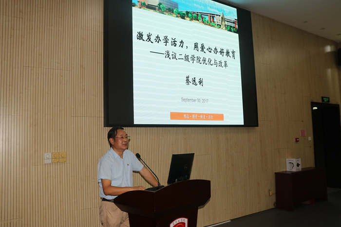 蔡远利校长作了题为《激发办学活动,用爱心办好教育》的报告。