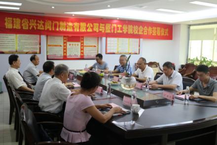 福建省兴达阀门制造有限公司地处中国著名水暖之乡南安市仑苍高新技术园区,公司专业生产各种阀门,规格齐全,最大口径可达4000mm。 公司设备先进,技术力量雄厚,生产工艺流程、现代科学管理先进。产品在国内外十分畅销。该公司方面参加会议及签署合作协议的有王斯文董事长、王福泽总经理、余经文总工程师, 及当地政府领导。双方就校企合作事宜, 学生生产实习,就业实习、毕业设计及新产品研发、技术改造等多项议程达成共识。