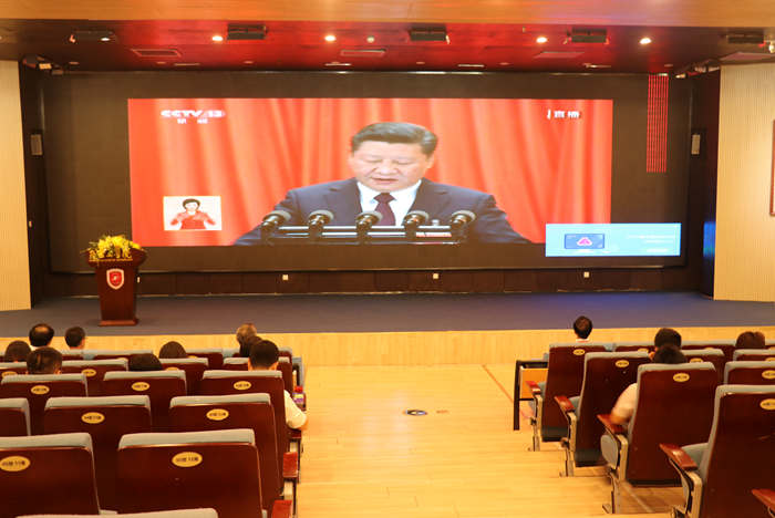 我校广大师生党员聚精会神地观看了习近平总书记的报告,在观看过程中,边听边记,认真学习领会习总书记报告的精神内涵。