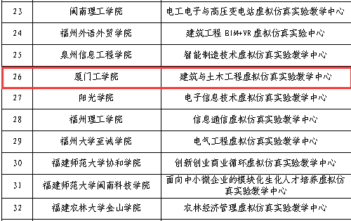 日前,福建省教育厅下达了《福建省教育厅关于公布2017年省级实验教学示范中心和虚拟仿真实验教学中心名单的通知》(闽教高〔2017〕34号),公布了2017年省级实验教学示范中心和虚拟仿真实验教学中心的名单。厦门工学院电工电子实验教学示范中心和工程坊经济管理实验教学示范中心获批成为省级实验教学示范中心,建筑与土木工程虚拟仿真实验教学中心获批成为省级虚拟仿真实验教学中心。