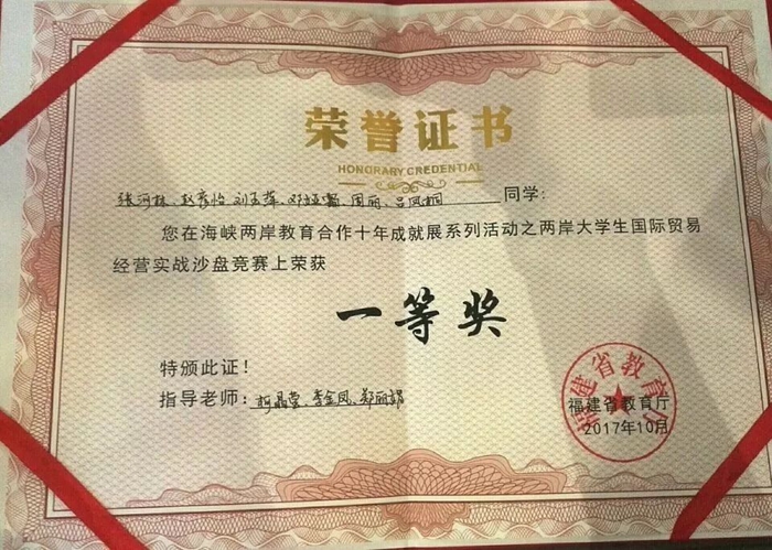 商学院代表队在首届“两岸大学生国际贸易经营实战沙盘竞赛”中荣获一等奖