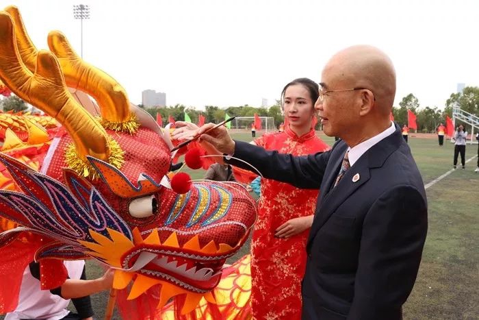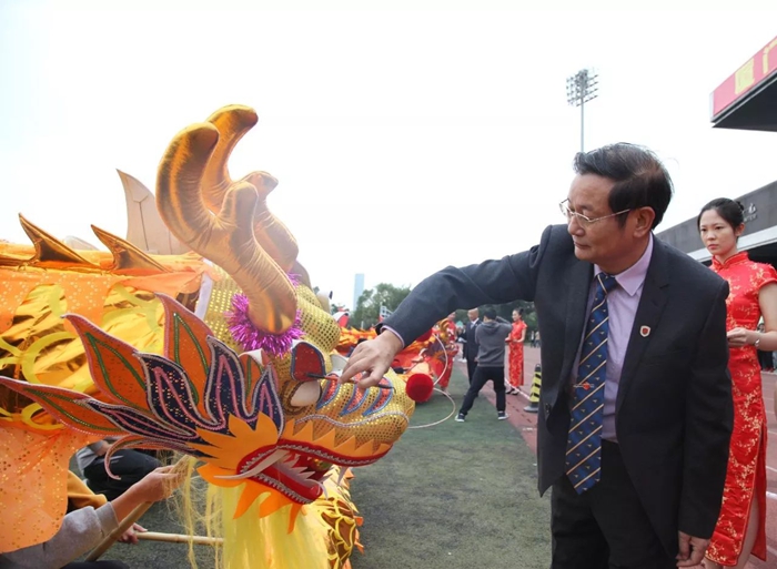 在场学生退场后,李德文董事长与蔡远利校长为祥龙点睛。