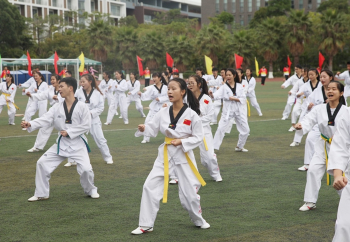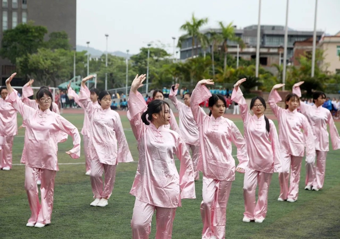 骤降的气温并没有削减全场的士气,富有生气的团体表演为本届运动会增添了几分温暖:整齐划一的气舞、活力四射的啦啦操、热情优雅的排舞、活灵活现的舞龙表演、干净利落的跆拳道、节奏激烈的散打。