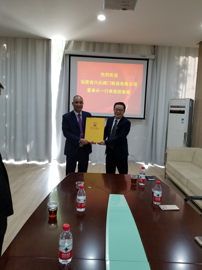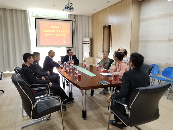 校企合作挂牌仪式结束后,冯良贵副校长与王斯文董事长等一行举行了座谈会,讨论了校企合作的相关事宜。最后,福建省兴达阀门制造有限公司王斯文董事长等一行参观了我校校园。