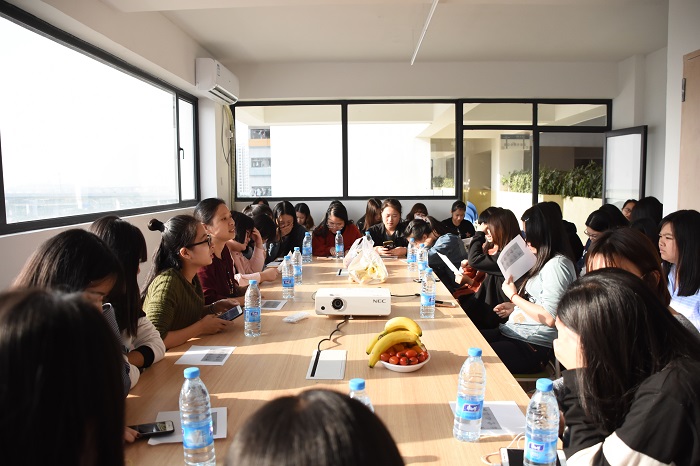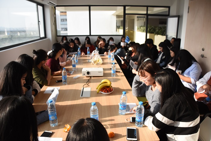 针对女生宿舍普遍存在的小团体交往、心理敏感导致的认知偏差以及宿舍矛盾、班级同学之间沟通少等常见现象,“导师在身边”活动第一期以心理沙龙的形式展开。书院心理中心在书院功能房特别准备了水果,为活动创建了轻松的氛围,希望同学们在这样的氛围下,可以畅所欲言。同时,书院特别邀请了我校心理中心蔡丽煌老师开展了“以心暖心”的心理沙龙活动,向同学们讲述了女生人际关系处理技巧,预防和缓解心理问题,优化心理品质,增强心理调适能力。-