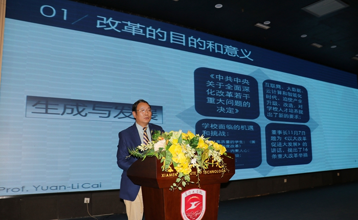 蔡远利校长指出改革是大势所趋,人心所向。厦门工学院将通过加强领导,加强宣传引导,加强统筹协调,加强督查检查,保证改革的成功。
