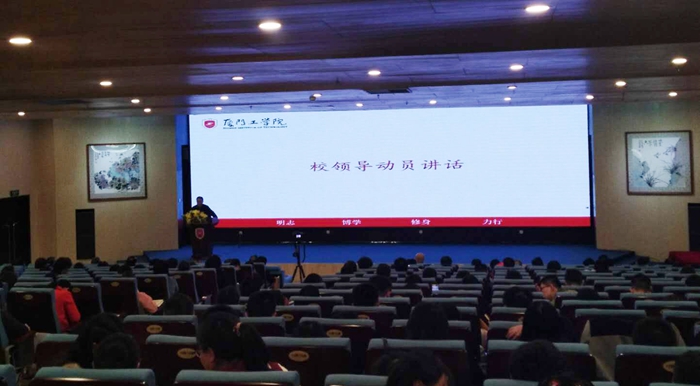 厦门工学院董事长李德文,校长蔡远利,党委书记林建华,执行董事、副校长李雄虎,副校长陈少牧、田晓皋、冯良贵、苏涵出席大会,全校教职工参加大会。