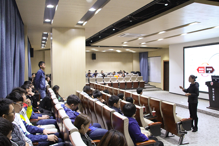 本次课程以《不忘初心、努力成长》为主题,从自我定位、明确目标、利用原理、解决问题、收获成长等五个方面展开阐述,结合生活中的DIY案例着重强调“人生无处不创业”的观点,同时将创业者所具备的性格特征细分为控制型、表现型、分析型、温和型、调整型人才,并就此深入与在座师生展开投资人身份转换的课堂互动,从而得出先看人、再看产品、再看市场和方向的结论。