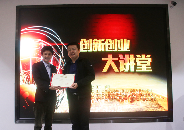 3月27日,厦门工学院创新创业大讲堂如期在正心大厦国学大讲堂开讲,此次应邀授课的是集美大学常跃中教授,同时应邀前来的还有厦门软件职业技术学院景宏磊教授。课程伊始,创客坊梁宏主任为常跃中教授和景宏磊教授颁发创新创业导师聘书。