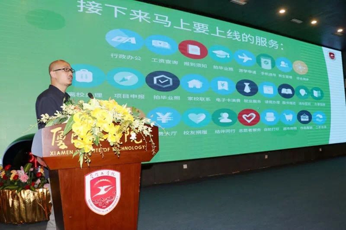 “今天是一个特殊的日子,值此我校建校九周年之际,我们在这里共同见证“厦工E+”app的正式启动,这是我校智慧校园建设努力取得的成果,也是我校智慧校园建设发展史上出彩点睛的一笔!