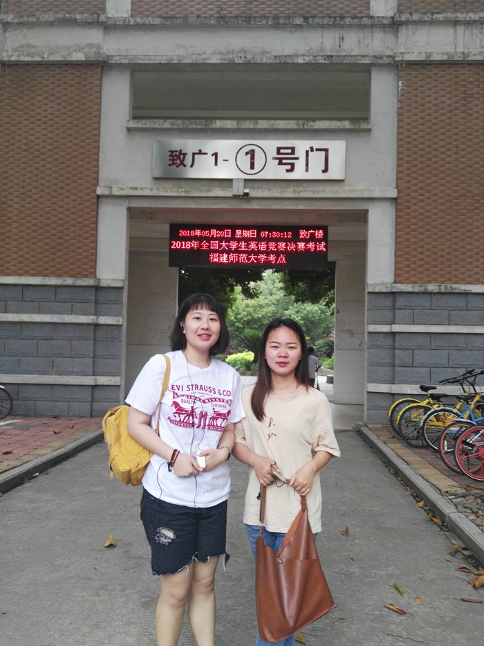 2018年5月20日上午9:00-11:00,全国大学生英语竞赛福建赛区决赛在福建师范大学旗山校区顺利举行,福建省赛区有256名选手参加决赛,厦门工学院有二名选手入围决赛。本竞赛设特等奖、一等奖、二等奖和三等奖四个国家奖励等级。在来自全省各所高校的199名非英语专业决赛选手中,厦门工学院16级园林专业吴甜甜同学(指导老师:喻新宇)和16级国际经济与贸易2班王锶琪同学(指导老师:宋榕榕)以优异成绩获得国家级一等奖!
