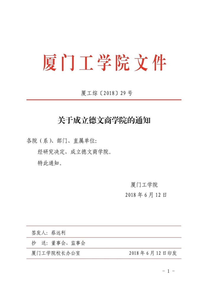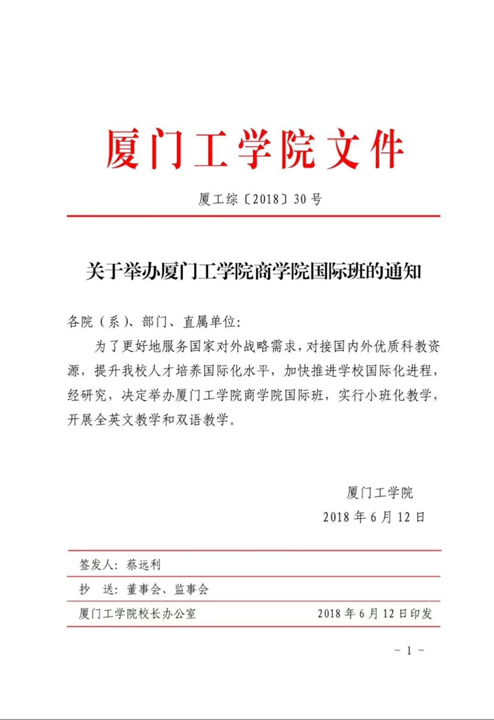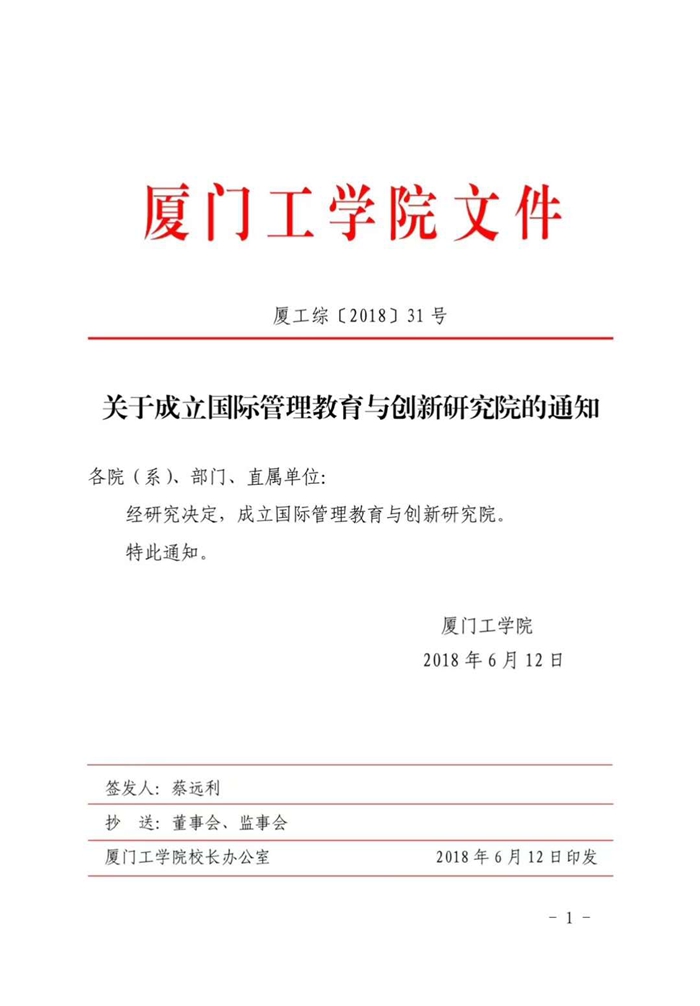 昨日,厦门工学院正式下放文件,厦门工学院成立德文商学院、厦门工学院国际管理教育与创新研究院、厦门工学院商学院国际班。