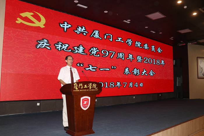 2018年7月4日晚,厦门工学院党委在图书馆报告厅隆重举行庆祝建党97周年暨2018年“七一”表彰大会,向中国共产党建党97周年致敬。