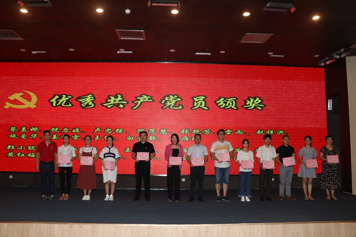 黄国良同志为2018年我校优秀共产党员颁发荣誉证书