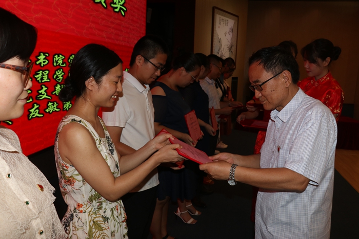 田晓皋同志为获得2018年先进党总支和党支部的代表颁发荣誉证书