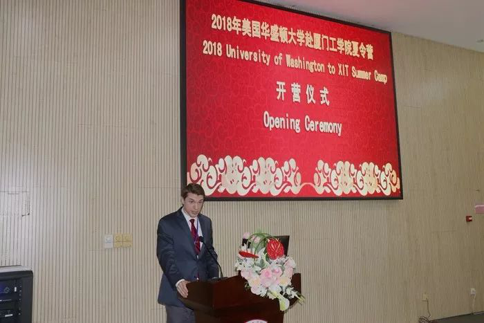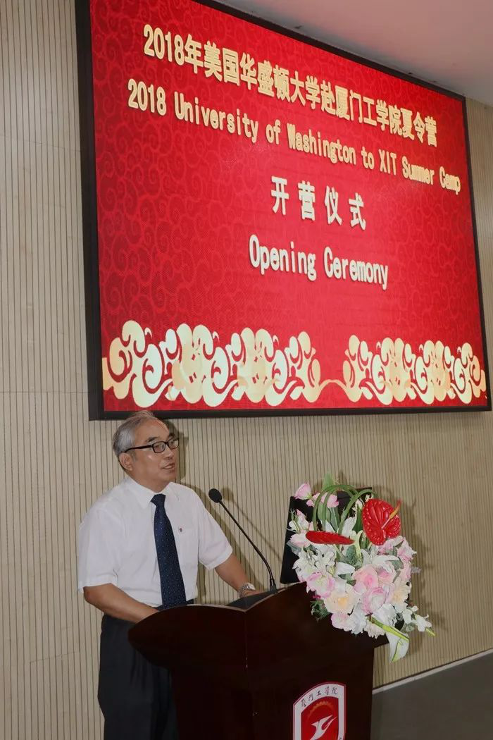 作为美国华盛顿大学带队老师代表,Professor William McGuire也在开营仪式上表达了对主办方厦门工学院的诚挚感谢。他在致辞中表示,华盛顿大学已经多次带领学生赴中国参加夏令营,这一次和厦门工学院的合作,让我们感受到了最热烈的欢迎。同时,他也希望营员们能够多和中国的同学、老师沟通与交流。人与人之间的友好交往是构建学校与学校之间,甚至是国家与国家之间关系的基础。如果在中国的这段期间内,我们能够构建起良好、和谐的关系,那么才算不虚此行。