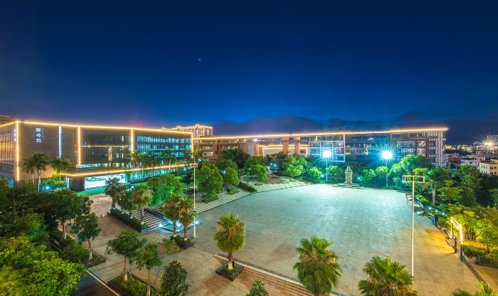 驻足广场的边缘,把视线从孔子雕像慢慢移到广场的另一侧。广场的另一侧也依高低起伏的地势布列着层层向高的长长的石阶。从石阶看上去,便是校园的主体建筑图书馆。石阶间有葱郁的树木,有盛开的鲜花,还有一位戴着斗笠的女工在清扫石阶上的落叶,而一群群的学生也正从台阶上、从广场上、从台阶与图书馆之间的通道上静悄悄地流向教学楼的方向。我不由地越过广场向着人流走去。瞬间,我走进那一个个迎着朝阳的少男少女的流动之中。男生多衣着简朴,但留着时尚的发型;女生多衣着时尚,但留着飘逸的长发。女生多背着书包,男生多将书拿在手中。他们三三两两地低声交谈着,或快或慢地走着,间或也有几个认识我的,愉快地打着招呼。