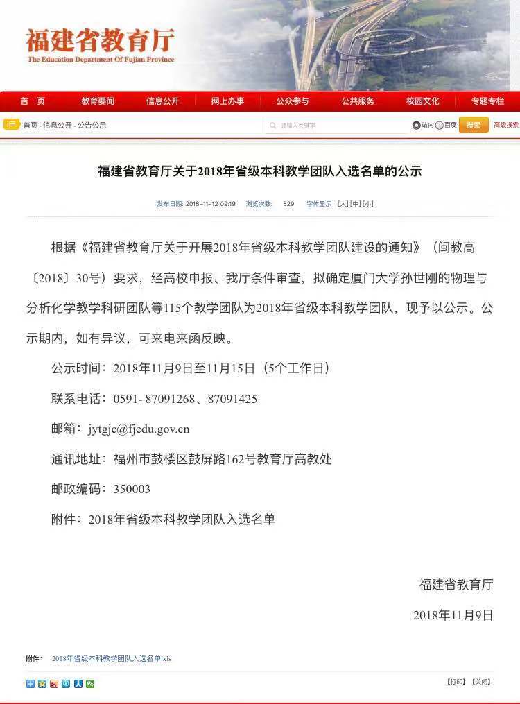 近日,福建省教育厅公布《福建省教育厅关于2018年省级本科教学团队入选名单的公示》。该公示显示:根据《福建省教育厅关于开展2018年省级本科教学团队建设的通知》(闽教高〔2018〕30号)要求,经高校申报、福建省教育厅条件审查,拟确定我校两个教学团队入选2018年省级本科教学团队(机械电子专业实验教学团队;土木建筑应用型专业群教学团队)。