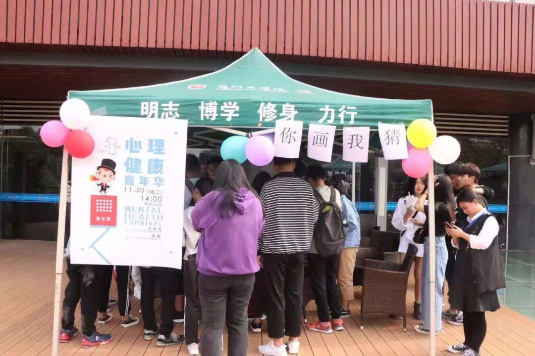 十一月二十日下午校学生心理委员会组织的心理健康嘉年华活动,2点开幕仪式在音乐港顺利开展。友容书院李子芳院长,友善书院管典安院长,友恭书院刘丽岚老师、团委韦凯时老师以及心理教育与咨询中心三位老师,还有周边高校学生心理委员会同学们一起参加活动。4点钟,百人素拓在孔子广场顺利进行。