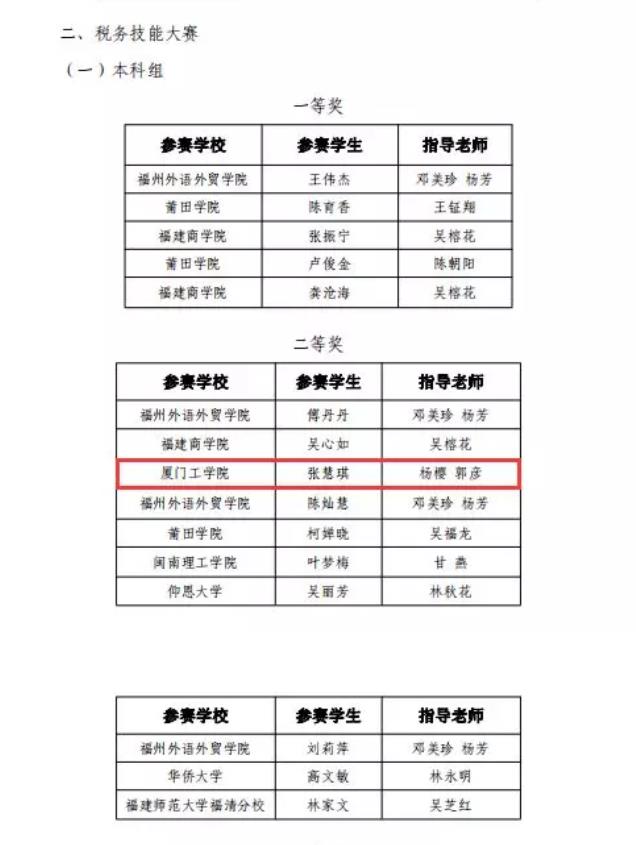 近日,福建省教育厅公布“福思特杯”第二届福建省大学生会计及税务技能大赛获奖名单,我校学子喜获佳绩!