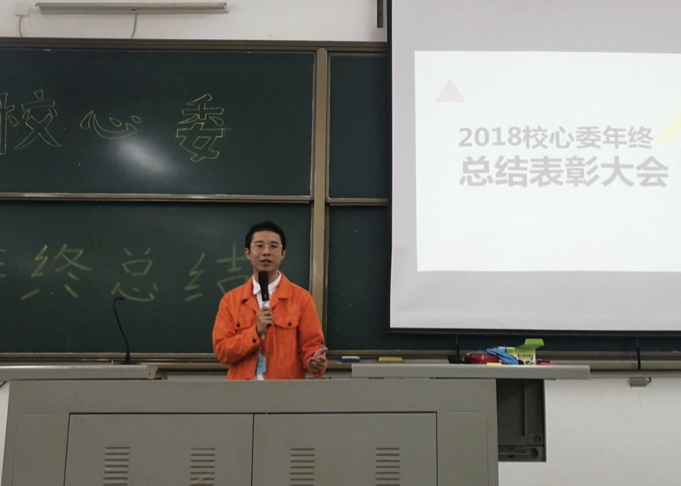 会议的第三个环节是心委会主席魏义帆代表主席团上台讲话。他认为心委的每一部分都很重要,每一个人也都是不可或缺的,他衷心感谢每一个和校心委风雨同舟的人。接下来,校心委的办公室、外联部、素拓部、宣传部、书院部等各部的部长分别总结了本部门本学期的工作并分享了心得。