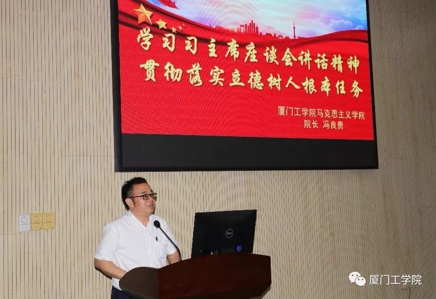 党委林建华书记再次强调了习近平总书记“六个强调”的具体内容,他表示,冯良贵副校长从五个方面传递了习近平总书记在学校思想政治理论课教师座谈会上的讲话精神,并结合我校实际解读了思想政治理论课的重要意义以及我校思想政治理论课的现状,让与会人员有了很大的收获。希望与会人员继续学习和思考。