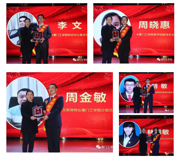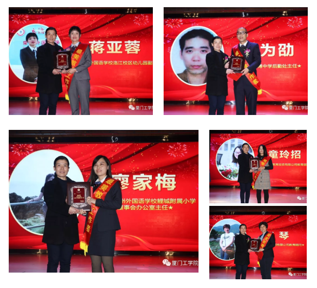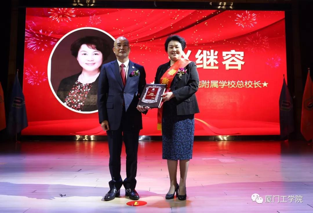 德文教育集团董事长、厦门工学院董事长李德文先生为“最美校长”厦门工学院附属学校总校长赵继容女士颁奖
