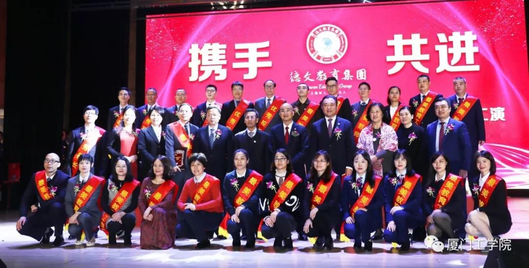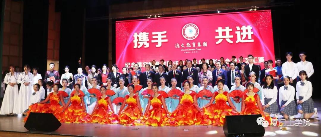 德文教育集团董事长、厦门工学院董事长李德文先生,董事长夫人周彩凤女士,德文教育集团执行董事、总裁、厦门工学院副董事长李雄虎先生,德文教育集团董事、厦门工学院校长田东平教授,德文教育集团董事、厦门工学院副校长苏涵教授,厦门工学院副校长冯良贵教授,厦门工学院副校长李咏梅教授,德文教育集团董事、厦门工学院附属学校总校长赵继容女士,德文教育集团董事、福建泉州外国语学校校长王贵斌先生,德文教育集团董事、福州文博中学校长郑宝生先生,德文教育集团董事、福建泉州外国语学校洛江校区校长林建生先生,德文教育集团董事、福建文博教育投资有限公司总经理沈娇梅女士,德文教育集团副总裁陈敏希女士,德文教育集团审计总监林文质先生, 金帝集团副总裁李福寿先生,金帝集团财务总监林勤女士及来自德文教育集团各职能部门,各成员单位厦门工学院、厦门工学院附属学校、福建泉州外国语学校、福州文博中学、福建泉州外国语学校洛江校区、福建文博教育投资有限公司、泉州外国语学校鲤城附属小学等单位的领导嘉宾,来自金帝集团各职能部门、金帝集团旗下福厦地产及相关配套单位的领导嘉宾,德文教育集团旗下成员单位中高层人员、教职工代表、各成员单位演职人员、金帝集团高管等欢聚一堂,共同庆祝德文教育集团成立两周年。