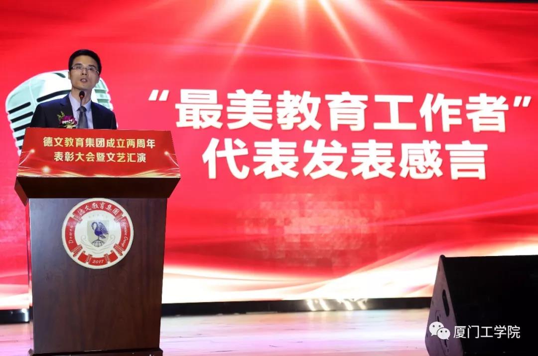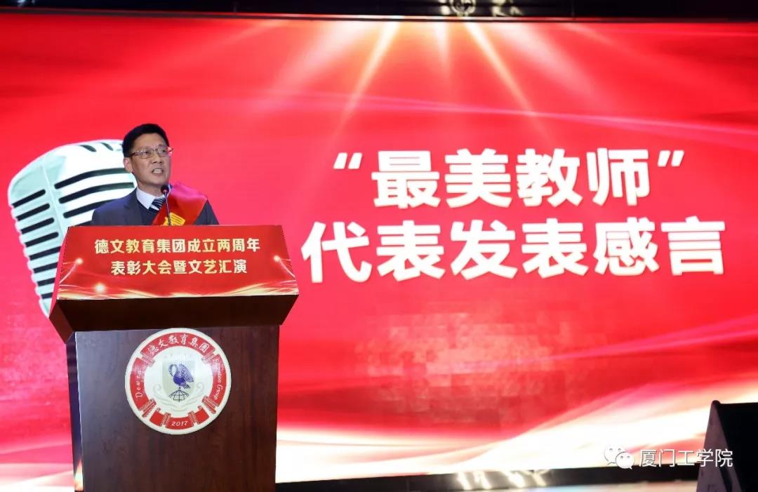 德文教育集团董事、厦门工学院校长田东平教授为“最美教师”颁奖