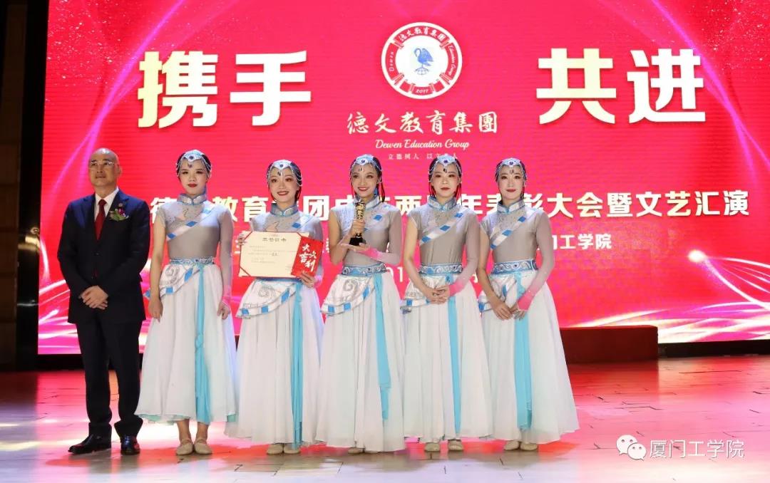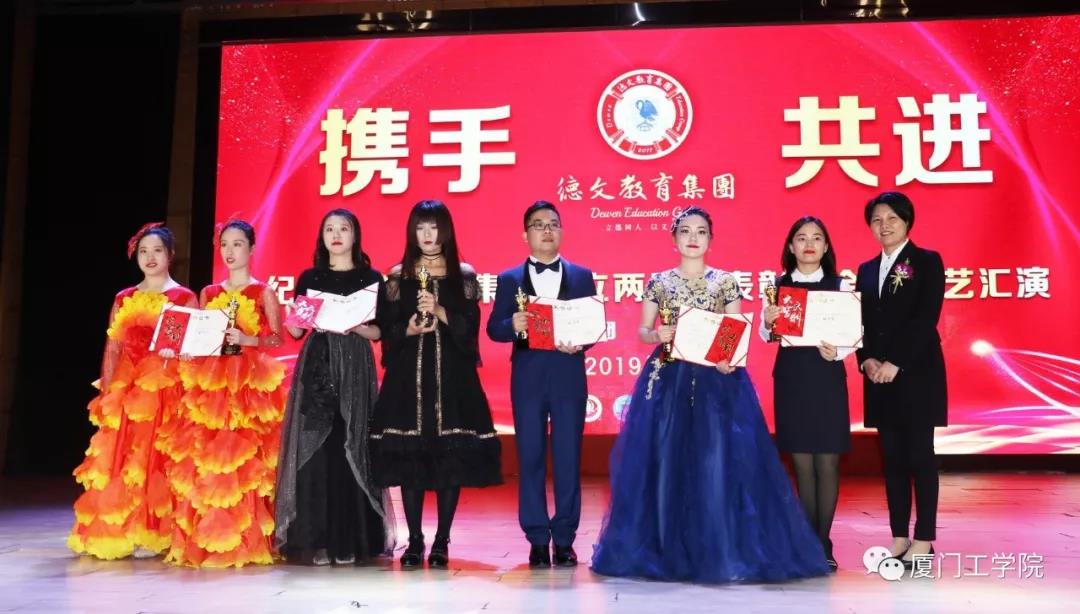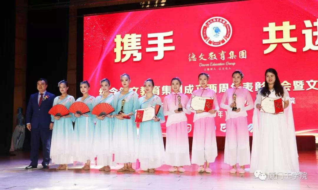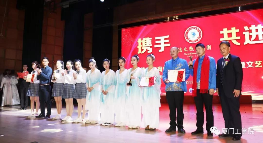 德文教育集团董事长、厦门工学院董事长李德文先生为获得文艺汇演一等奖的节目代表颁奖