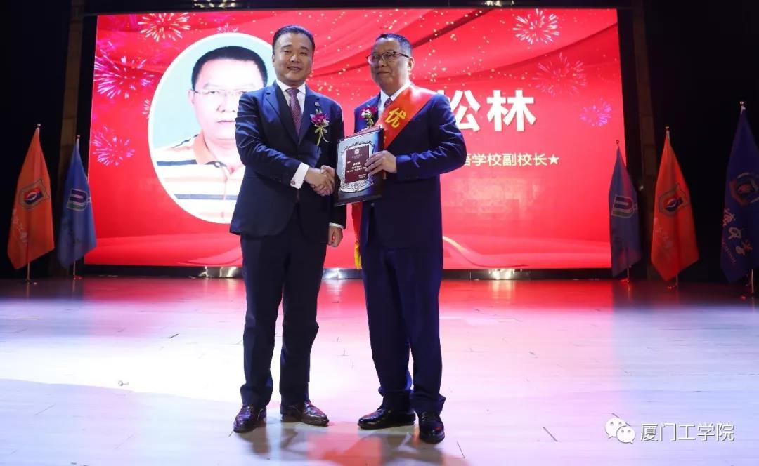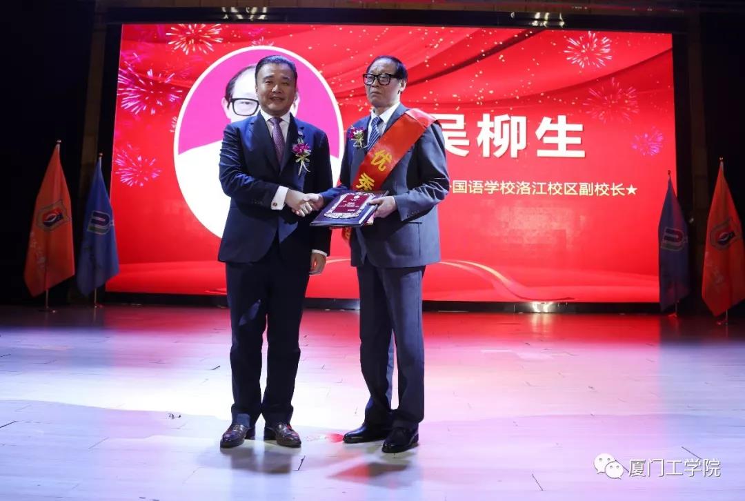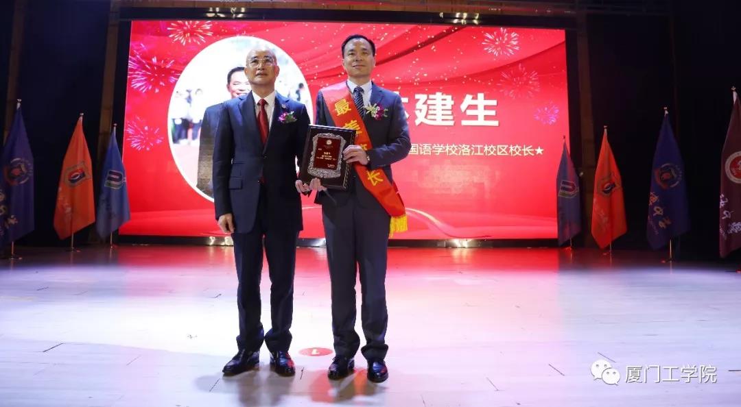 德文教育集团董事长、厦门工学院董事长李德文先生为“最美校长”福建泉州外国语学校洛江校区校长林建生颁奖