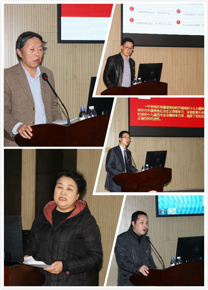 会上,校内各党总支(直属党支部)书记、党委直属部门负责人一一进行述职汇报。与会人员根据各述职人员抓基层党建工作开展情况进行现场民主评议。