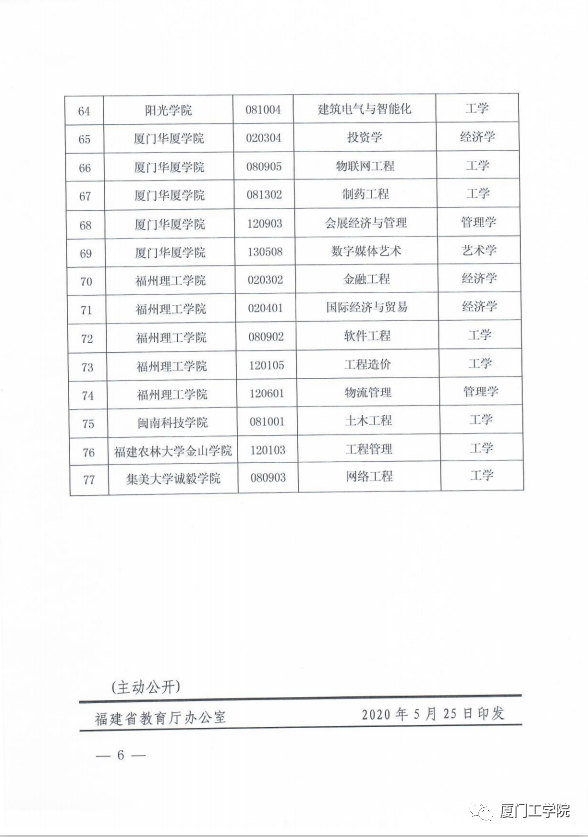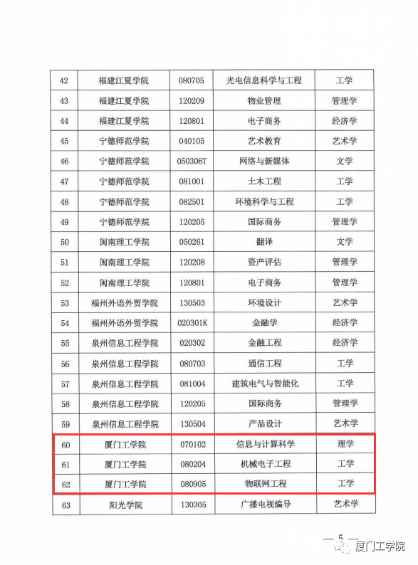 5月25日,福建省学位委员会印发《福建省学位委员会关于公布2020高校增列学士学位授权专业名单的通知》(闽学位〔2020〕4号),同意我校信息与计算科学增列为理学学士学位授予专业;机械电子工程、物联网工程增列为工学学士授予专业。