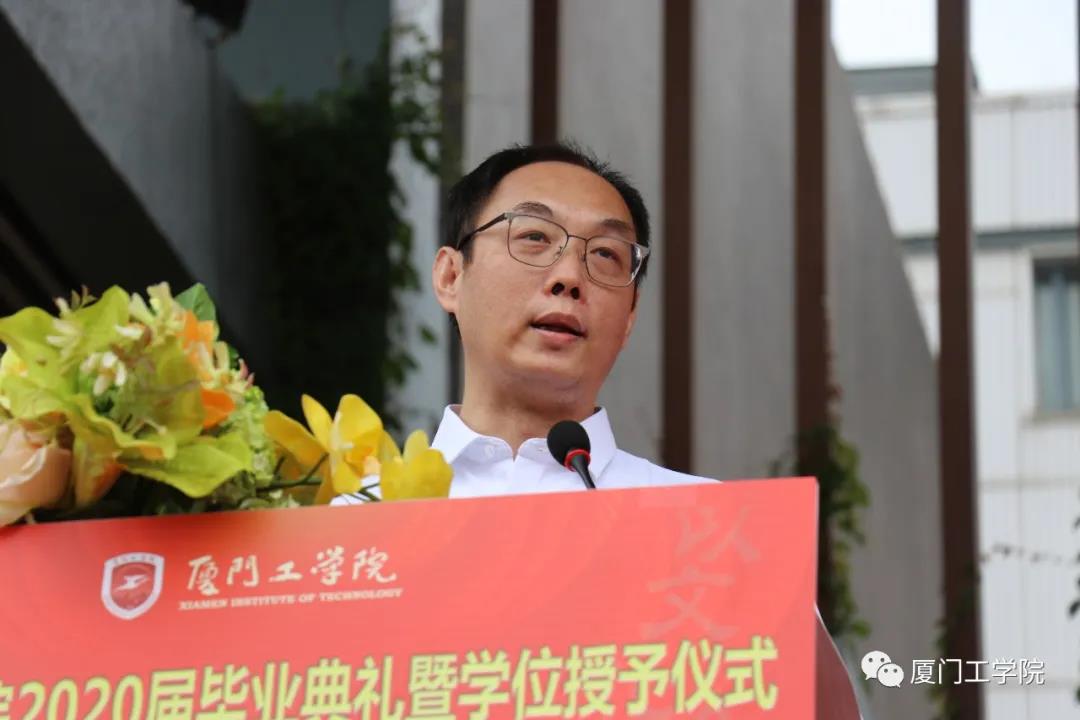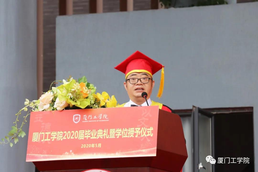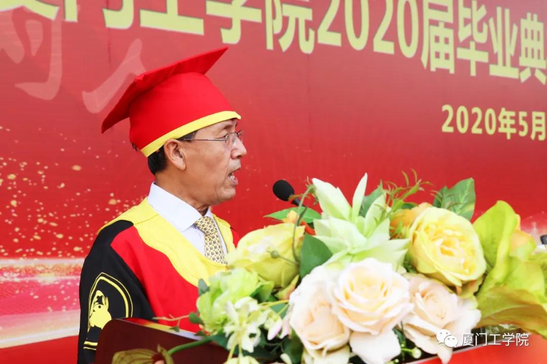 今天是一个特别的日子,是一个喜庆的日子。同学们即将结束在厦门工学院的大学学习生涯,将要告别母校,踏上人生新的旅程。虽然疫情尚未过去,但为了不给同学们的大学生涯留下遗憾,为同学们的毕业画上一个圆满的句号,今天我们在这里隆重举行毕业典礼。在此,首先我代表学校对全体毕业生同学们通过四年不懈努力圆满完成大学学业向同学们表示热烈的祝贺!同时我也要对同学们在这次突如其来的新冠肺炎疫情中对学校工作的理解和支持表示衷心感谢!