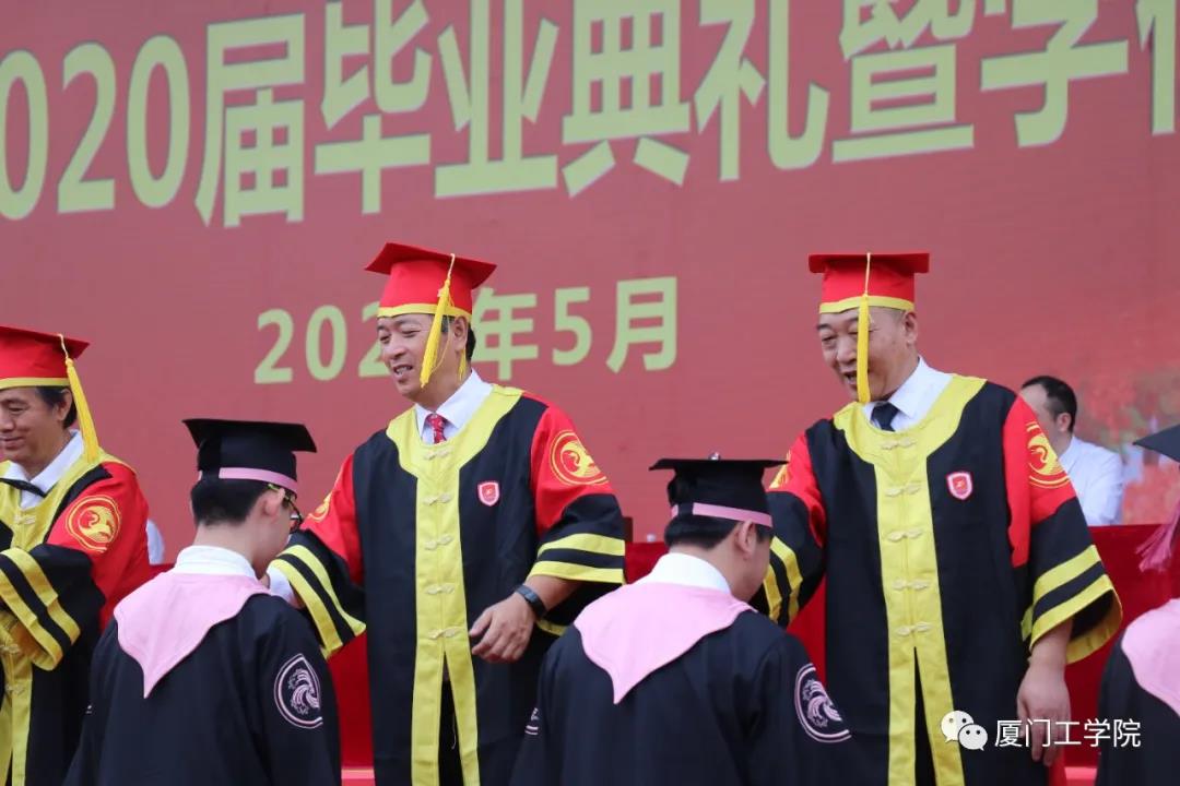 5月29日,2020届毕业典礼暨学士学位授予仪式在厦门工学院 1号运动场举行。董事长李德文先生,校长田东平教授,副董事长李雄虎先生,副校长苏涵教授、冯良贵教授、李咏梅教授及金帝集团、德文教育集团高管,各学院、书院、单位领导共同出席,2020届全体毕业生参加了本场典礼仪式。